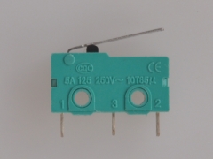 微动开关是一种施压促动的快速转换开关,因为其开关的触点间距比较小,故名微动开关,又叫灵敏开关。工作原理是:微动开关的外机械力通过传动元件(按销、按钮、杠杆、滚轮等)将力作用于动作簧片上,当动作簧片位移到临界点时产生瞬时动作,使动作簧片末端的动触点与定触点快速接通或断开。当传动元件上的作用力移去后,动作簧片产生反向动作力,当传动元件反向行程达到簧片的动作临界点后,瞬时完成反向动作。微动开关的触点间距小、动作行程短、按动力小、通断迅速。其动触点的动作速度与传动元件动作速度无关。