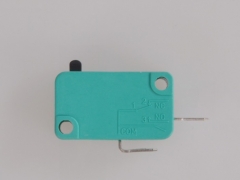 微动开关是一种施压促动的快速转换开关,因为其开关的触点间距比较小,故名微动开关,又叫灵敏开关。工作原理是:微动开关的外机械力通过传动元件(按销、按钮、杠杆、滚轮等)将力作用于动作簧片上,当动作簧片位移到临界点时产生瞬时动作,使动作簧片末端的动触点与定触点快速接通或断开。当传动元件上的作用力移去后,动作簧片产生反向动作力,当传动元件反向行程达到簧片的动作临界点后,瞬时完成反向动作。微动开关的触点间距小、动作行程短、按动力小、通断迅速。其动触点的动作速度与传动元件动作速度无关。